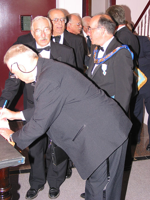 img_000451e0c63f67237.jpg Published July 12, 2013 at 487 × 650 in img_000451e0c63f67237.jpg C’est l’affluence! Les frères arrivent en loge et signent le registre. Plus de 115 francs-maçons seront présents.